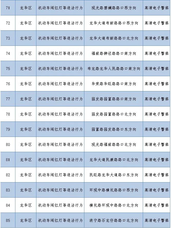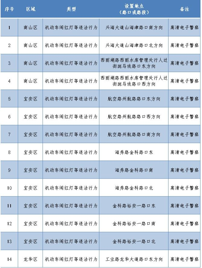 見圳客戶端·深圳新聞網(wǎng)2020年7月28日訊 為保障道路的通行有序和安全,加大對機動車違法行為的非現(xiàn)場執(zhí)法力度,保障深圳道路交通安全暢順。近期,深圳交警根據(jù)《道路交通安全違法行為處理程序規(guī)定》(公安部令105號)第十六條規(guī)定,依法公布啟用262套交通技術(shù)監(jiān)控設備。