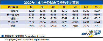 雖然求職競爭激烈,但一線城市應(yīng)屆生起薪水平高于其他城市,也令不少畢業(yè)生更青睞選擇。《報(bào)告》表明,3月份之后應(yīng)屆生薪酬有所增加,二季度各月份的應(yīng)屆生起薪也在逐漸提高。分城市等級來看,一線城市應(yīng)屆生平均起薪最高,為8227元,而新一線、二線、三線城市薪酬逐漸遞減,分別為6807、6310和6244元。從趨勢變動來看,3月之后一線和新一線城市應(yīng)屆生薪酬變動較小,而二線、三線城市薪酬上升明顯。