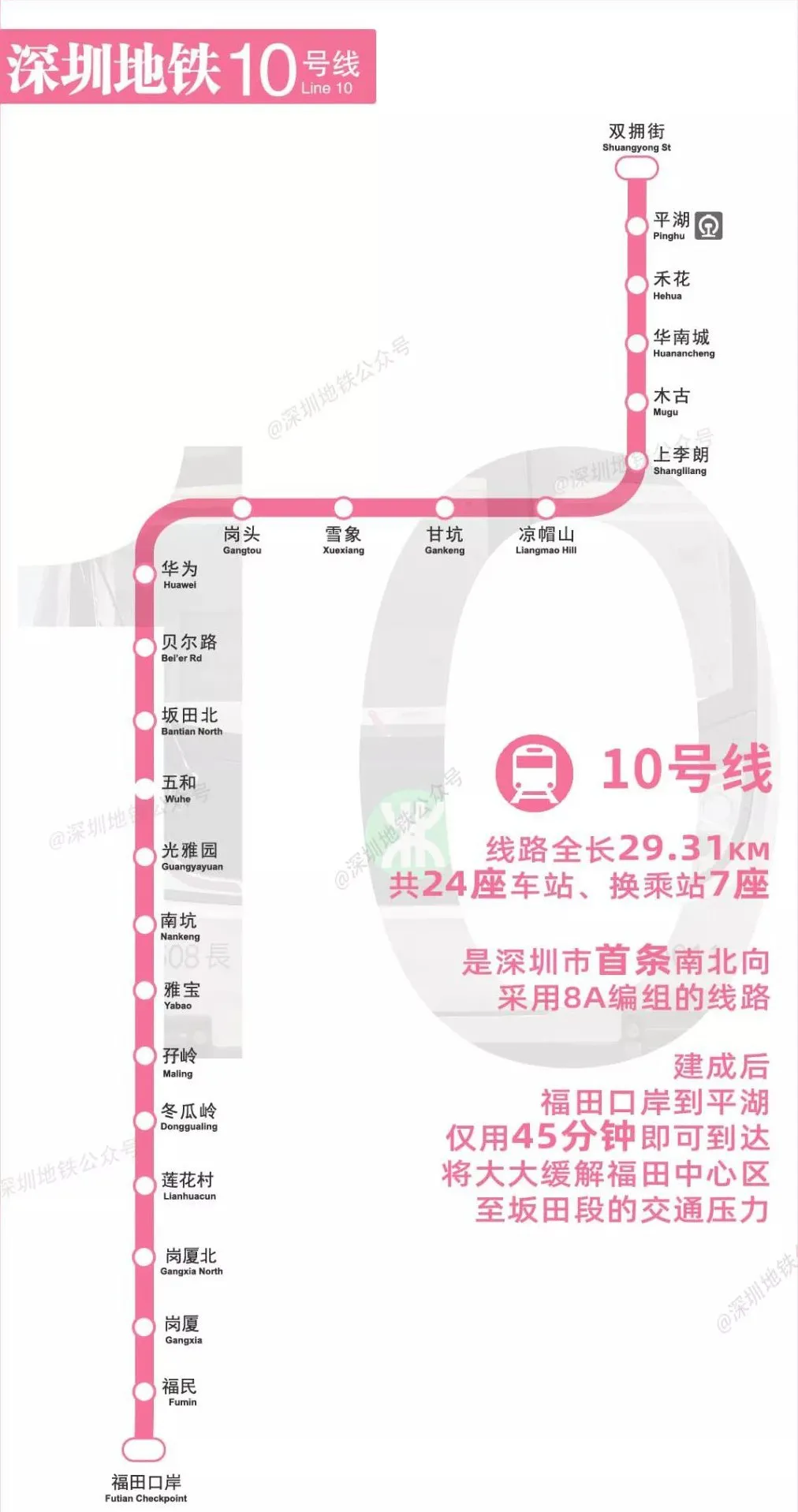 深圳地鐵10號線正式開通后,平湖、李朗、甘坑和坂田地區(qū)的人們可以搭乘地鐵出行,使生活變得更加的便利舒適。