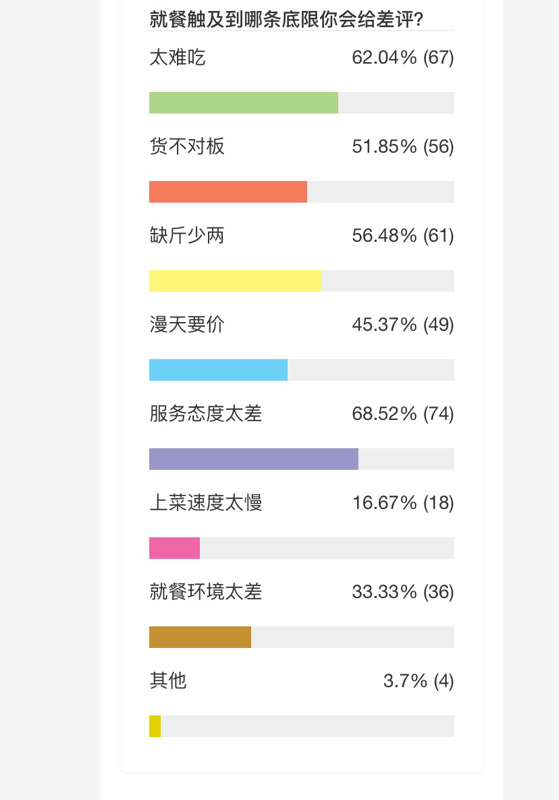 用餐后做出評(píng)價(jià),是消費(fèi)者的基本權(quán)利。針對(duì)“就餐差評(píng)”的問題,深圳新聞網(wǎng)昨天發(fā)起了網(wǎng)友投票。結(jié)果,有69.52%的網(wǎng)友表示,他們?cè)?jīng)在用餐后給過差評(píng)。在給出差評(píng)的原因中,“服務(wù)態(tài)度差”、“太難吃”高居前兩名。對(duì)商家提出中肯的批評(píng)與監(jiān)督,是每個(gè)消費(fèi)者享有的基本權(quán)利,中肯的評(píng)價(jià)不僅是商家進(jìn)步的動(dòng)力,也讓更多網(wǎng)友能夠快速篩選定位商家,從而促進(jìn)行業(yè)的良性發(fā)展。
