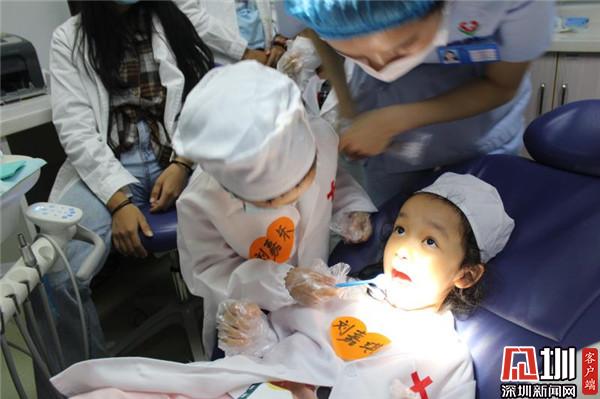 深圳新聞網(wǎng)訊(見圳客戶端、深圳新聞網(wǎng)記者 李慧 通訊員 楊紀(jì)歐)10月25日,羅湖區(qū)桂園街道老圍社區(qū)黨群服務(wù)中心組織社區(qū)青少年到醫(yī)院開展了一場社會實踐體驗活動,13位小朋友身穿白大褂,頭戴醫(yī)生帽,手拿口腔鏡,為“病人”檢查牙齒,當(dāng)了一回牙醫(yī),體驗了當(dāng)醫(yī)生的快樂,同時也感知到愛護牙齒的重要。3歲的劉嘉樂小朋友給姐姐看完牙齒后對媽媽說:“媽媽,姐姐有蛀牙。我以后也要好好刷牙?!?/span>