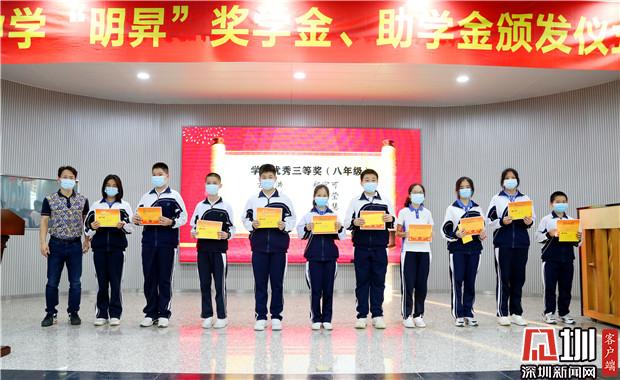 當(dāng)天,144名學(xué)子及三個(gè)團(tuán)隊(duì)分別獲得特長(zhǎng)突出獎(jiǎng)、學(xué)業(yè)進(jìn)步獎(jiǎng)、學(xué)業(yè)優(yōu)秀獎(jiǎng)一二三等獎(jiǎng)等不同獎(jiǎng)勵(lì)。同時(shí)頒發(fā)的還有中考優(yōu)秀獎(jiǎng)、中考卓越獎(jiǎng)、中考狀元獎(jiǎng)等獎(jiǎng)項(xiàng),由已畢業(yè)的布心學(xué)子家長(zhǎng)返校代為領(lǐng)獎(jiǎng)。當(dāng)天還有4名老師受到表彰。2018年7月明昇集團(tuán)為布心中學(xué)設(shè)立108萬(wàn)元獎(jiǎng)學(xué)基金,每學(xué)期發(fā)放一次,獎(jiǎng)勵(lì)學(xué)業(yè)優(yōu)秀、學(xué)業(yè)進(jìn)步、特長(zhǎng)突出的學(xué)生。本學(xué)期該獎(jiǎng)學(xué)金第五次發(fā)放,到目前為止獎(jiǎng)勵(lì)學(xué)生近1000人次。從今年6月份開(kāi)始,還增設(shè)了明昇助學(xué)金。