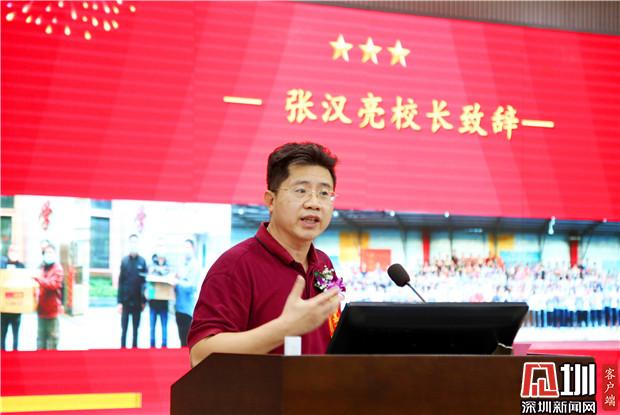 在致辭中,布心中學(xué)校長(zhǎng)張漢亮表示,布心中學(xué)建校31年來(lái),教師團(tuán)隊(duì)逐步成長(zhǎng),這里有全國(guó)優(yōu)秀教師、南粵優(yōu)秀教師、眾多市區(qū)級(jí)優(yōu)秀教師、區(qū)功勛園丁及各類名師,更有一批盡職盡責(zé)、無(wú)私奉獻(xiàn)的黨員教師、先進(jìn)教師。"只要心中有夢(mèng)想,把握每一次機(jī)會(huì),就能不斷進(jìn)步,不斷發(fā)現(xiàn)自己的潛力,超越自我!"張漢亮表示。