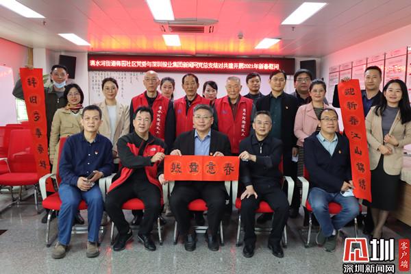 見圳客戶端?深圳新聞網(wǎng)1月29日訊(記者 劉晨 彭桂紅 通訊員 陳秋珊 紀(jì)楚苗)“感謝你們的看望,你們的慰問讓我們感覺很溫暖、很貼心。”1月28日下午,深圳市紀(jì)委監(jiān)委駐報(bào)業(yè)集團(tuán)紀(jì)檢監(jiān)察組組長(zhǎng)、報(bào)業(yè)集團(tuán)黨組成員陳鵬,深新傳媒總裁、深圳新聞網(wǎng)總編輯藍(lán)岸,帶領(lǐng)報(bào)業(yè)集團(tuán)紀(jì)檢監(jiān)察室黨支部、深圳新聞網(wǎng)黨總支部黨員代表,到羅湖區(qū)清水河街道梅園社區(qū)開展結(jié)對(duì)共建新春慰問活動(dòng)。