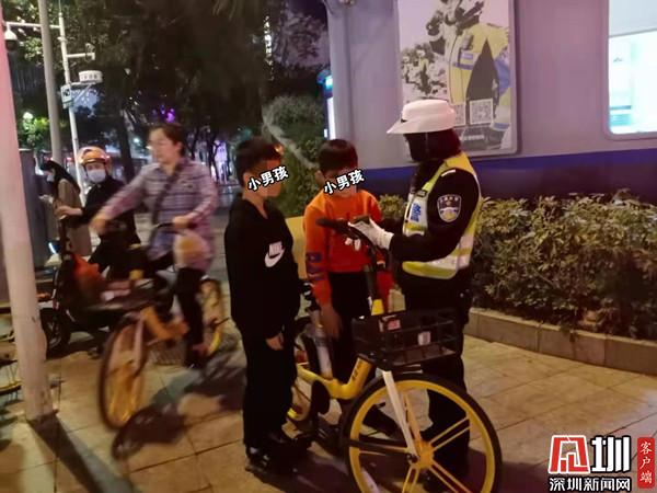 2月1日晚,羅湖交警大隊東門中隊警輔隊員曾惠珍執(zhí)勤時發(fā)現(xiàn)兩名10歲左右的小男孩在主干道深南大道上嬉笑打鬧,一名男孩騎行共享單車,另一名男孩跟在自行車后面跑動,全然不顧路上疾馳的車輛。