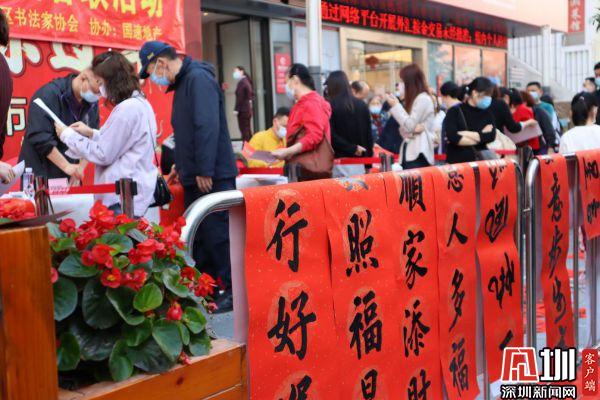 據(jù)悉,羅湖區(qū)書法家協(xié)會于2021年春節(jié)前夕組織一批優(yōu)秀書法家深入社區(qū)基層,現(xiàn)場為群眾書贈春聯(lián),書贈福字,目前活動先后在羅湖美術(shù)館南廣場、漁民村、羅湖區(qū)委等地舉辦多場。羅湖區(qū)書法家書贈春聯(lián)活動已連續(xù)舉辦了22年,深受群眾喜愛,成為羅湖的一項(xiàng)品牌活動。