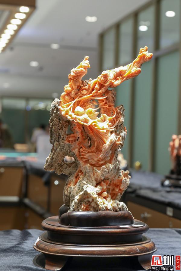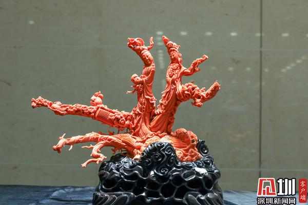 “現(xiàn)場許多珍稀珊瑚藝術(shù)品都是為了本次展會專程從臺灣博物館調(diào)來的,是博物館典藏級別的藝術(shù)品?,F(xiàn)場看到的幾株原生態(tài)的寶石珊瑚樹,都是千年級別的,非常珍貴。寶石珊瑚生長在深海一百多公尺之下的火山巖環(huán)境中,生長非常緩慢。十年的時(shí)間才能長1厘米?!闭箷f(xié)辦方工作人員說道。