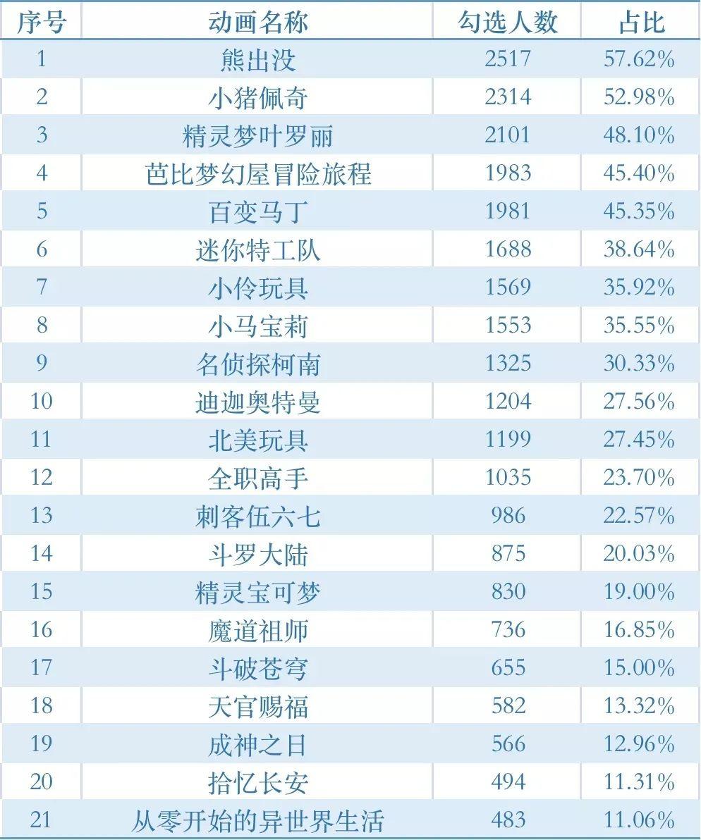 動(dòng)畫片的選擇參考前期“您的小孩平時(shí)喜歡看哪部動(dòng)畫片”的調(diào)查結(jié)果選定。