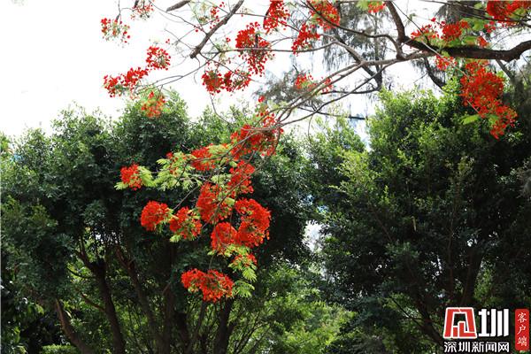 見(jiàn)圳客戶端·深圳新聞網(wǎng)5月18日訊(記者 李慧 見(jiàn)習(xí)記者 郝鈺詩(shī) )又是一年五月天,春已盡,夏未央。伴隨深圳夏季而來(lái)的還有熱烈的鳳凰花。“葉如飛凰之羽,花若丹鳳之冠?!痹谏钲诘脑S多地方,都種植了鳳凰木,五六月夏初之際,鳳凰花便開(kāi)始掛滿枝頭,抬頭仰望便是紅彤彤的一片,就像太陽(yáng)遺落在人間的衣裳,點(diǎn)綴著灣區(qū)之光。5月18日,深圳新聞網(wǎng)記者來(lái)到深圳東湖公園和洪湖公園,用鏡頭定格鳳凰花之美。