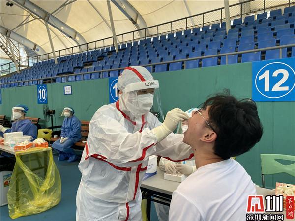 “根據(jù)當(dāng)前疫情防控工作要求,結(jié)合羅湖區(qū)實(shí)際情況,我們?cè)?8日啟用去體育館這個(gè)臨時(shí)采樣點(diǎn),現(xiàn)場(chǎng)我們可以看到整個(gè)采樣工作是很有秩序的,因?yàn)槲覀冊(cè)诿總€(gè)時(shí)間段安排不同的人群進(jìn)行采樣,所以不會(huì)出現(xiàn)排隊(duì)擁擠等情況?!绷_湖區(qū)衛(wèi)健局公共衛(wèi)生和職業(yè)衛(wèi)生科科長(zhǎng)江正談道,羅湖成立了一支擁有1200人的平戰(zhàn)結(jié)合應(yīng)急采樣隊(duì),隨時(shí)為疫情防控工作做好備戰(zhàn)準(zhǔn)備,一旦有需要,隨時(shí)就可以投入戰(zhàn)斗?!艾F(xiàn)在這個(gè)臨時(shí)檢測(cè)點(diǎn)每天的采樣量大概在5000個(gè)左右,我們很有信心,能夠打贏這場(chǎng)戰(zhàn)‘疫’?!苯f(shuō)。
