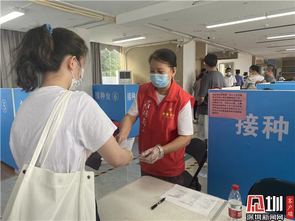 在新冠疫苗布心市場臨時接種點,前來接種的市民有序排隊,來自社區(qū)的工作人員和義工在各自的崗位上做好指引工作,引導(dǎo)市民了解疫苗接種的詳情和注意事項,并幫助他們在手機上提前進行了信息預(yù)登記,耐心為市民答疑解惑。65歲的義工成寶梅是一名深圳市五星級義工,此刻的她正在接種區(qū)域引導(dǎo)市民去接種臺,從早上九點到下午六點,她就這么一直站在崗位上,精神抖擻,笑臉迎人,絲毫不感覺累。成寶梅說道,“這個歲數(shù)了還能為這個社會發(fā)揮一些余熱,這是很有意義的一件事情,能聽到別人說的一聲謝謝,感覺什么都值得了?!?/p>