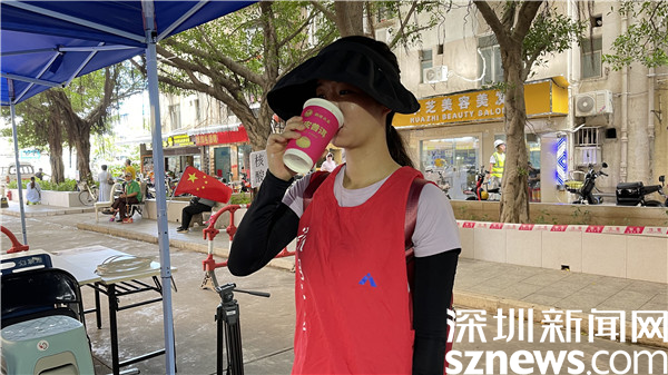 “目前全區(qū)大概有1.1萬名工作人員奮戰(zhàn)在社區(qū)、驛站防疫一線,他們無懼酷暑風(fēng)雨堅守崗位,用汗水為疫情防控構(gòu)筑堅實堡壘,羅湖區(qū)婦聯(lián)代表羅湖區(qū)社區(qū)小區(qū)組,積極聯(lián)系愛心企業(yè)瀾滄古茶集團,送上一杯陳皮茶,感謝他們的無私奉獻,也希望他們保護好自己?!秉S毓瓊對記者說。