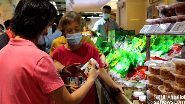 記者現(xiàn)場看到,在華潤萬家蓮塘店二樓,一位店員拿起一瓶來自廣西隆林的農(nóng)產(chǎn)品,向顧客熱情地介紹著?!皨?,我覺得這個不錯,顏色也不是那種很白的,看起來很放心。”顧客拿起一瓶百合干,和同行的母親討論了一下,就放進了購物籃內,身后不少顧客也拿起商品仔細打量,專柜上“羅湖區(qū)消費幫扶專區(qū)”的字樣引人注目。
