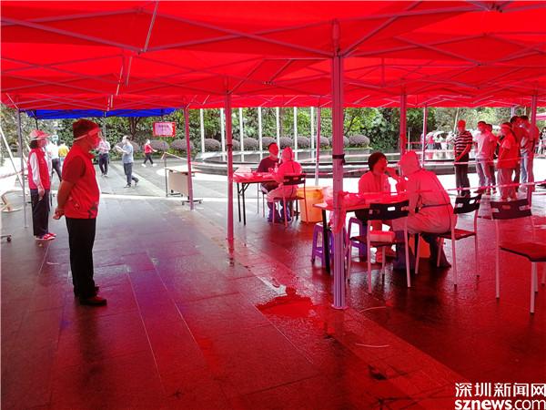 紅色雨棚下,前來檢測(cè)的市民陸陸續(xù)續(xù)排起來隊(duì),只見社工忙著維持秩序、為市民解答問題,醫(yī)護(hù)人員在操作臺(tái)上認(rèn)真地進(jìn)行取樣,現(xiàn)場(chǎng)井然有序,絲毫不因暴雨而有任何的影響?!斑@是我們份內(nèi)事,風(fēng)雨無情,我們有‘義’(義務(wù)),希望我們的努力能幫助疫情早日散去,還給大家一個(gè)健康的家園。”社工楊紀(jì)歐說。