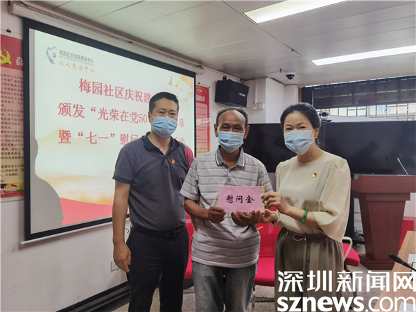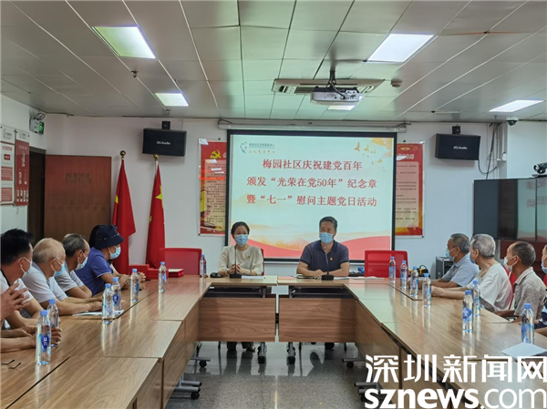 讀特客戶端·深圳新聞網(wǎng)2021年6月30日訊(記者 郭含笑 通訊員 陳秋珊 紀楚苗)為進一步加強和體現(xiàn)黨組織對黨員的關心與愛護,在中國共產黨百年華誕來臨之際,6月30日下午,深圳市羅湖區(qū)清水河街道梅園社區(qū)黨委在黨群服務中心二樓會議室舉行慶祝建黨百年頒發(fā)“光榮在黨50年”紀念章暨“七一”慰問主題黨日活動。