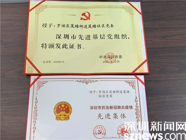 由于工作成績(jī)突出,他所在的蓮塘社區(qū)黨委獲得2020年“深圳市先進(jìn)基層黨組織”以及2020年“深圳市抗擊新冠肺炎疫情先進(jìn)集體”等榮譽(yù)稱號(hào)。