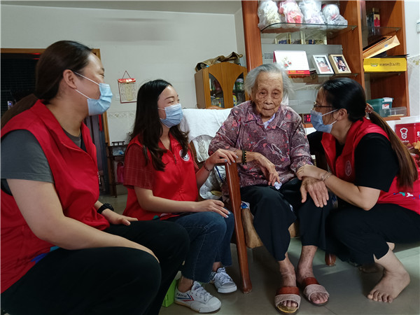 在鐘錦云老人家里,85歲的鐘阿姨挨個跟年輕的社工握手,一口一個乖女,笑著說:“你們真乖啊,又來看鐘姨了,謝謝你們啊?!边@兩年,社工經(jīng)常登門看望,她總是喜歡叫社工乖女,與社工談笑間親如家人。社工轉(zhuǎn)達(dá)了社區(qū)黨委對老人的問候,并祝老人中秋快樂。分別時,老人不舍地將大家送到樓梯間,一再叮囑有空就來玩。