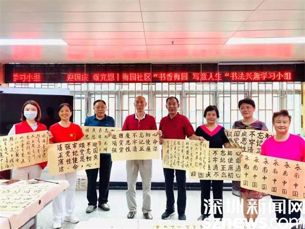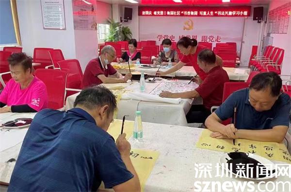 本次小組活動共5節(jié),這節(jié)小組以“迎國慶 頌黨恩”為主題,組員們在老師的耐心指點下,通過普通的筆墨和紙張,用一筆一畫表達著自己愛國愛黨情懷。“這每一筆都表達著我對黨的忠誠和對祖國的熱愛。”剛完成一幅書法作品的叔叔說道。