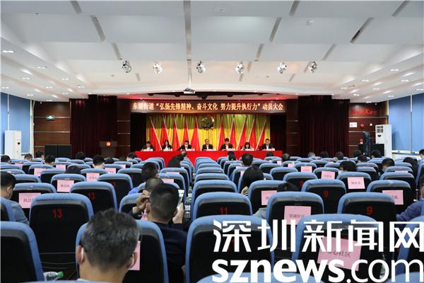 讀特客戶端·深圳新聞網(wǎng)2021年11月19日訊(記者 郭含笑 通訊員 黃貽凱)感恩奮進跟黨走,緊鑼密鼓再出發(fā)。羅湖區(qū)第八次黨代會、區(qū)“兩會”的順利閉幕是一個結(jié)束,也是羅湖新征程、新使命、新奮斗的開始。為弘揚羅湖光榮傳統(tǒng)、賡續(xù)羅湖血脈傳承,在街道全體黨員干部中形成憋足一口氣趕超奔跑、鉚足一股勁狠抓落實的風氣,把先鋒精神、奮斗文化轉(zhuǎn)化為強大執(zhí)行力、踐行在奮斗新征程,11月19日下午,深圳市羅湖區(qū)東湖街道召開“弘揚先鋒精神、奮斗文化 努力提升執(zhí)行力”動員大會。街道黨工委書記程時菊等處級干部,各辦、中心全體在編人員,各社區(qū)黨委書記、副書記、副站長、城管專干共100余人參加會議。