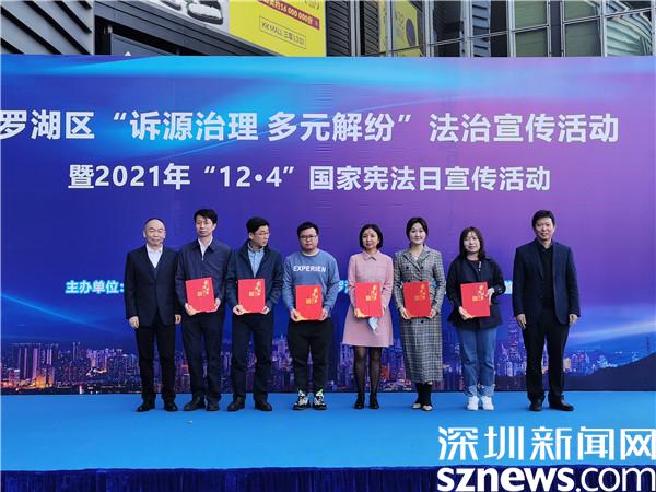 12月3日上午,羅湖在桂園街道KK-mall西門(mén)廣場(chǎng)舉行2021年“12·4”國(guó)家憲法日暨“訴源治理多元解紛”法治宣傳活動(dòng)。