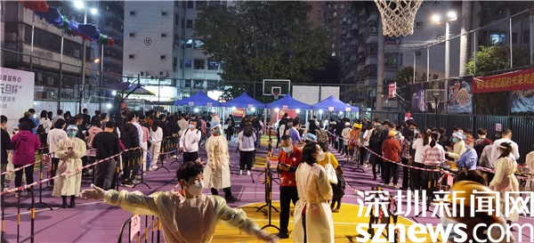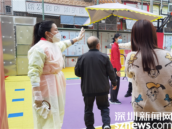 羅湖區(qū)審計(jì)局黨組書(shū)記黃吉南在新村社區(qū)防疫現(xiàn)場(chǎng)指導(dǎo)核酸檢測(cè)流程。