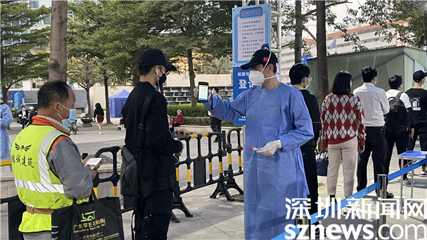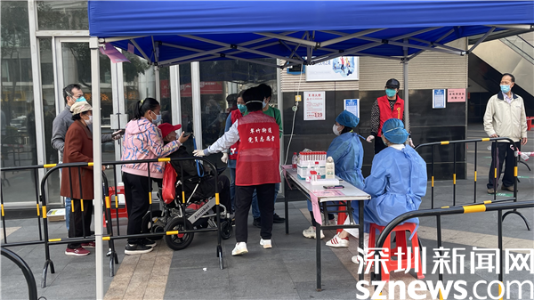 在翠竹街道金翠園核酸檢測(cè)點(diǎn),記者在現(xiàn)場(chǎng)看到核酸檢測(cè)隊(duì)伍共分成兩條隊(duì)伍,居民正按照地面劃好的“一米線”排隊(duì),身穿紅馬甲的社區(qū)工作人員與醫(yī)護(hù)人員正有條不紊地進(jìn)行核酸采樣工作,詢問、登記、采樣......在羅湖的街頭,除了秩序井然的核酸檢測(cè),溫暖的故事也在悄然發(fā)生著。