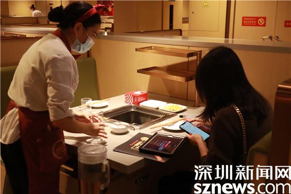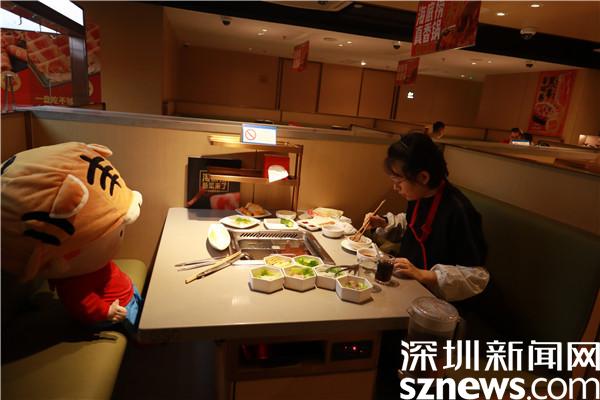 冬季是火鍋消費的旺季,在用餐高峰期,位于深圳市羅湖區(qū)這家連鎖火鍋店里,可見門口顯眼處貼著“半份菜 滿份愛”的海報,店內(nèi)還有光盤行動等標(biāo)語,還有一名光盤行動倡導(dǎo)員在餐廳內(nèi)不時給消費者溫馨提示,倡導(dǎo)顧客適量點餐。