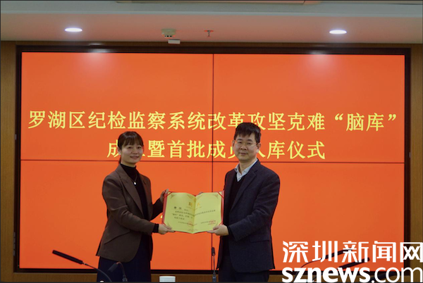 讀特客戶端·深圳新聞網(wǎng)2022年2月12日訊(記者 吳艷 通訊員 曾林 陳心彤)近日,羅湖區(qū)紀(jì)委監(jiān)委召開區(qū)紀(jì)檢監(jiān)察系統(tǒng)改革攻堅克難“腦庫”成立(以下簡稱“腦庫”)暨首批成員入庫儀式,22名紀(jì)檢監(jiān)察干部入選首批“腦庫”成員。區(qū)委常委、區(qū)紀(jì)委書記、區(qū)監(jiān)委主任姚文勝向成員代表頒發(fā)聘書并作講話。