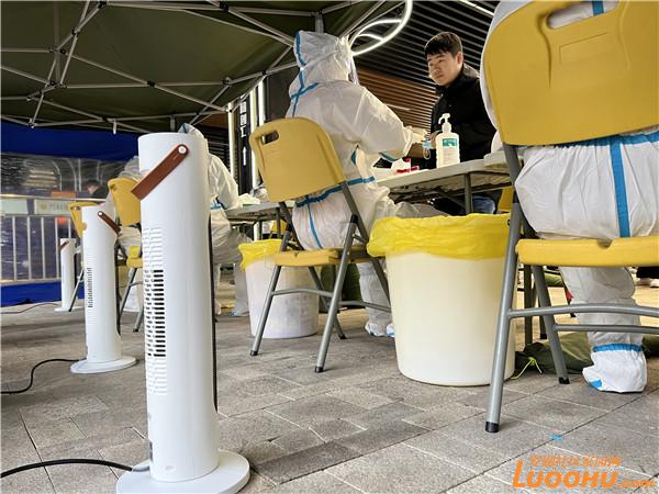 十分鐘后,物資配送車輛來到萬科里核酸檢測點,工作人員將熱乎乎的姜茶送到工作人員手中,并熟練地尋找合適的地方架起暖風(fēng)機?!皬闹苣┑呐瘜殞?,到今天的暖風(fēng)機,暖心行動一再升級,感覺很驚喜?!绷_湖醫(yī)院護士劉新媚向記者說道,目前疫情防控工作任務(wù)艱巨,檢測點周末也在連續(xù)運轉(zhuǎn),但街道及時的物資保障,讓所有一線人員都感覺很暖心。