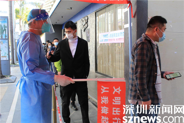 在2月份剛開始做義工的那幾天,深圳遭遇寒潮,他衣衫單薄,舉著粵核酸碼的牌子,手都凍僵了。但當(dāng)社工問他冷不冷,要不要回去添加衣服時(shí),他都說不冷。曾勇林不愿離開崗位,因?yàn)橛辛怂囊龑?dǎo)、維持,有他協(xié)助操作手機(jī),來檢測的居民就可以縮短檢測的時(shí)間,就不用挨冷受凍,其他志愿者就可以得到休息。曾勇林寧愿一個(gè)人凍著冷著,也要讓更多人受益。