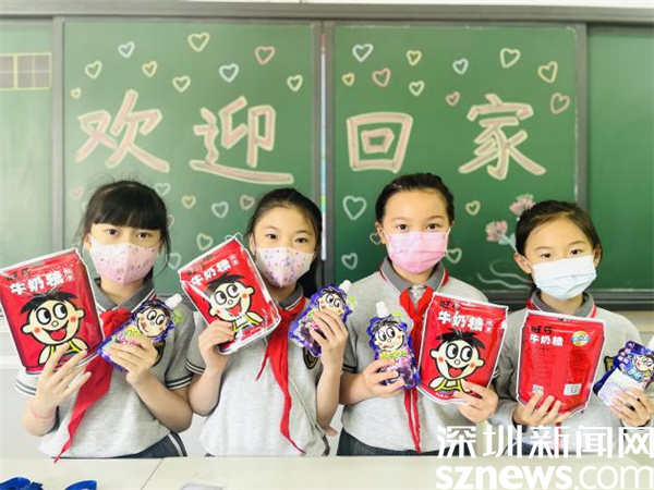 三年級各班更是個性十足,旺仔、禮物袋、可吸果凍一應(yīng)俱全,孩子期盼的心被滿滿的愛充斥著?!皩W校就是我的家!”