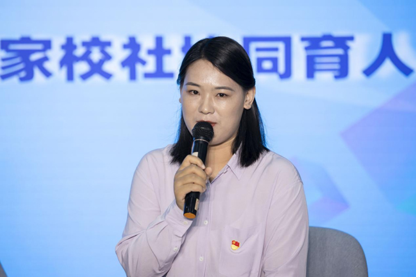 社區(qū)代表大望社區(qū)黨委書記高桂秀向大家分享了她致力于“家校社協(xié)同育人”的初心以及大望社區(qū)的相關(guān)探索,大望社區(qū)孩子及其家庭人數(shù)占社區(qū)的70%以上,且大部分無(wú)異于“留守未成年人”和困境未成年人。大望社區(qū)抓住轄區(qū)內(nèi)家庭教育的痛點(diǎn)與堵點(diǎn),通過(guò)貫徹社區(qū)“大黨委”理念、建立定期聯(lián)系的聯(lián)席工作例會(huì)制度、充分利用轄區(qū)優(yōu)勢(shì)資源,成立家長(zhǎng)黨員志愿者服務(wù)隊(duì)等多措并舉,多方聯(lián)動(dòng),形成家庭主體、學(xué)校主導(dǎo)、社區(qū)參與的育人網(wǎng)絡(luò)。以社區(qū)黨委為突破點(diǎn),融合一體,聚合成銜接有效、資源共享、活動(dòng)共商、項(xiàng)目共育、互促共榮的動(dòng)態(tài)雙向互動(dòng)協(xié)同育人共同體,構(gòu)建大望特色的‘家校社’協(xié)同育人的新模式,交出一份人民滿意的答卷。