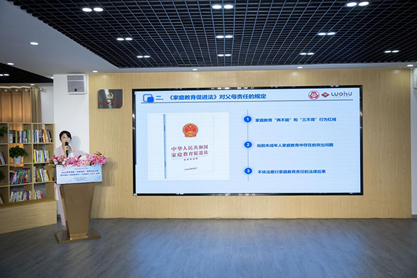 沙龍伊始,羅湖區(qū)人民法院民一庭(家事庭)副庭長(zhǎng)欒媛帶來(lái)《〈家庭教育促進(jìn)法〉解讀》的專題講座,闡明《家庭教育促進(jìn)法》的意義,明晰家長(zhǎng)“兩不得”“三不能”的行為紅線,并針對(duì)當(dāng)下大多家庭教育存在生而不養(yǎng)、養(yǎng)而不教等突出問(wèn)題進(jìn)行剖析,結(jié)合工作歷程中生動(dòng)形象的案例,讓許多家長(zhǎng)明確了法律的要求。同時(shí),欒法官也為家長(zhǎng)們提出了實(shí)用科學(xué)的家庭教育內(nèi)容和方法,也對(duì)家校社協(xié)同育人機(jī)制發(fā)表了自己的想法。