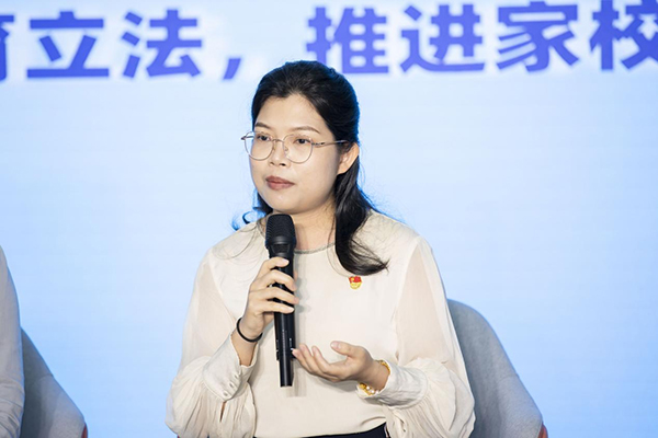 “家長(zhǎng)要做好家庭教育,家庭教育要配合學(xué)校教育,學(xué)校和家庭配合是做好家庭教育的關(guān)鍵”,家長(zhǎng)代表深圳市兒童青少年健康發(fā)展協(xié)會(huì)理事安天麗也談到自己對(duì)家、校、社各盡其職、合作共贏的理解,她認(rèn)為家長(zhǎng)要積極創(chuàng)建各種親子家庭活動(dòng),緊密親子關(guān)系;積極參與社區(qū)組織的家庭教育指導(dǎo)和實(shí)踐活動(dòng),提升家庭教育能力;同時(shí)為孩子創(chuàng)造社會(huì)實(shí)踐的機(jī)會(huì)。
