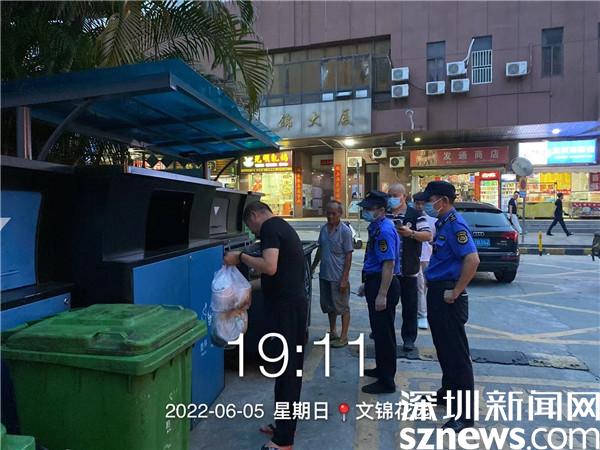 當(dāng)天晚上19點(diǎn)-21點(diǎn),小區(qū)黨員和義工在文錦花園、海富花園垃圾分類投放點(diǎn)與小區(qū)垃圾分類督導(dǎo)員共同開展垃圾分類夜間督導(dǎo)活動(dòng),引導(dǎo)居民分類投放垃圾,并為居民詳細(xì)講解和宣傳廚余垃圾分類的相關(guān)知識(shí)。同時(shí)聯(lián)同街道執(zhí)法隊(duì)開展“夜間執(zhí)法”,對(duì)所檢查的小區(qū)廚余垃圾分出量較低的物業(yè)小區(qū)開展執(zhí)法檢查,一方面指導(dǎo)垃圾分類督導(dǎo)員切實(shí)履職,另一方面對(duì)于亂投放垃圾的行為,對(duì)其責(zé)令改正。
