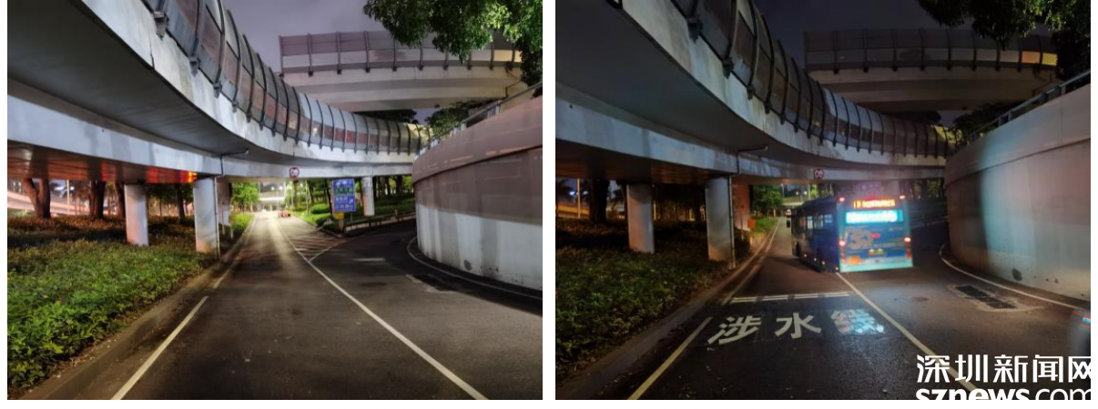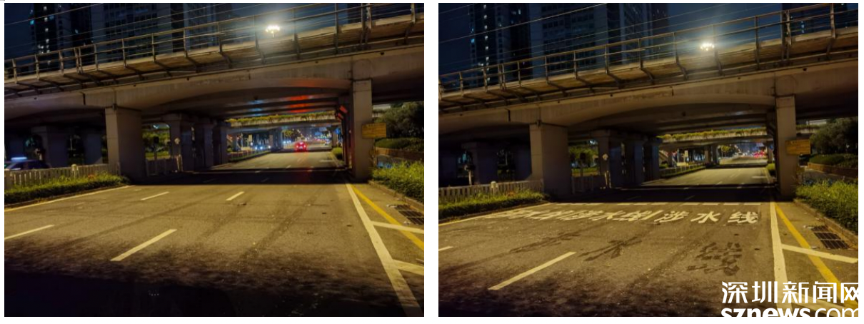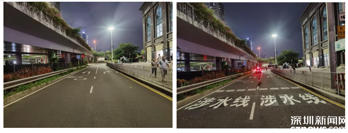 泥崗東路紅嶺立交橋下涉水線施工前后對比