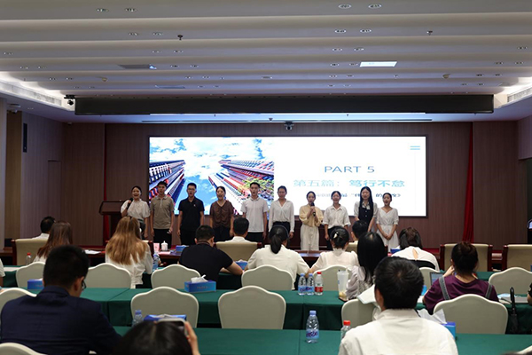 結(jié)業(yè)儀式現(xiàn)場,五組學(xué)員圍繞培訓(xùn)的主題,通過不同的方式生動(dòng)地展示了大家在這次“雛鷹訓(xùn)練營”培訓(xùn)中的所思所想所感所悟。第一組學(xué)員通過視頻和演講強(qiáng)調(diào)學(xué)思想、強(qiáng)能力、重實(shí)踐的重要性;第二組圍繞招商引資工作形成新聞聯(lián)播;第三組通過情景劇的形式記錄了信訪工作的24小時(shí);第四組通過“民生面對(duì)面”為大望梧桐片區(qū)建設(shè)建言獻(xiàn)策;第五組改編的歌曲《最偉大的棚改》“聲”入人心。大家紛紛表示,通過此次培訓(xùn)學(xué)習(xí),對(duì)以后的工作有著重要的指導(dǎo)作用。