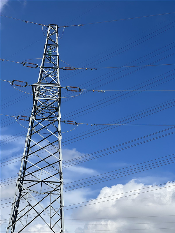 有序交錯的電線桿,在藍(lán)天白云的映襯下,顯現(xiàn)出縱橫交錯的秩序美。