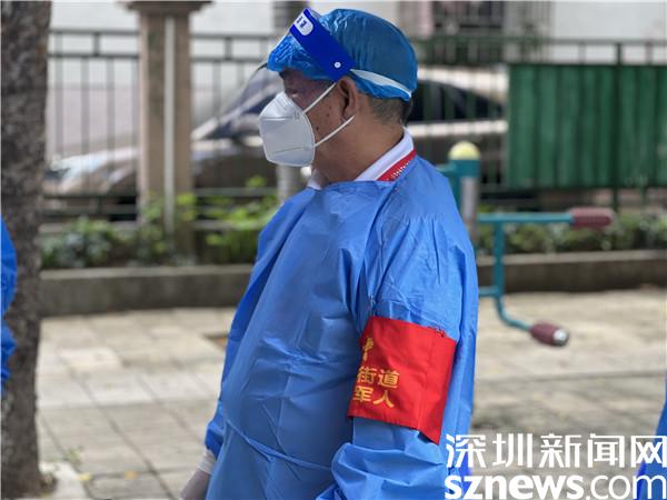 每到下午4點(diǎn),羅湖區(qū)翠竹街道龍屋小區(qū)的籃球場(chǎng)上,都有陸陸續(xù)續(xù)迎來做核酸的居民,而李任平,則會(huì)提前半個(gè)小時(shí)到達(dá)現(xiàn)場(chǎng)準(zhǔn)備,每日如此,風(fēng)雨無阻。穿上防護(hù)服,戴上防護(hù)面罩,將“翠竹街道退役軍人”的臂章戴上,鮮紅的黨員徽章別在胸前,李任平就開始站在核酸檢測(cè)點(diǎn)卡口前,指引做核酸的居民掃碼、亮碼,維持秩序。
