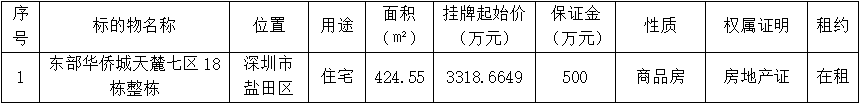 東部華僑城天麓七區(qū)18棟整棟房產(chǎn)公開掛牌交易公告
