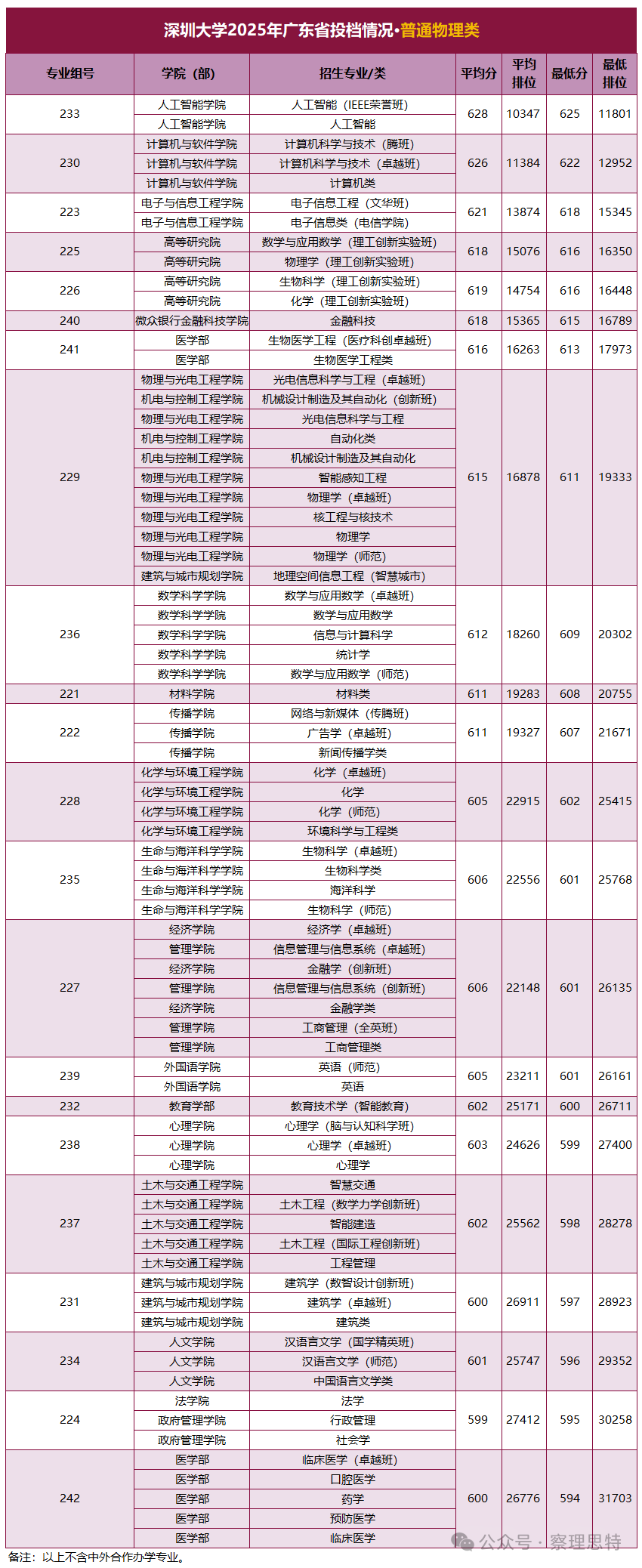 深圳大學(xué)2025年廣東省普通物理類投檔最低分為594分,排位31703;普通歷史類投檔最低分為592分,排位7271。作為深圳本土綜合性大學(xué)的代表,深圳大學(xué)在文理兩科均保持了穩(wěn)定的吸引力。