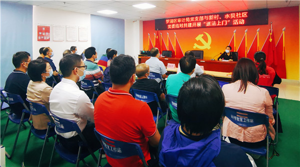 近日,羅湖區(qū)審計局黨支部“送法上門”,與新村、水貝社區(qū)黨委結(jié)對共建,舉辦《民法典》“進社區(qū)、進家庭”宣講活動。