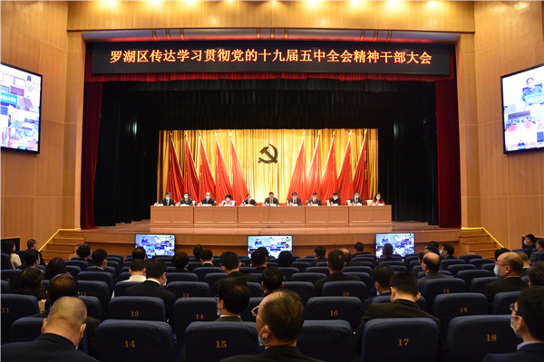 11月4日上午,深圳召開傳達學習貫徹黨的十九屆五中全會精神干部大會。會后,羅湖隨即召開全區(qū)干部大會,迅速傳達學習貫徹黨的十九屆五中全會精神和省、市有關會議精神,動員全區(qū)上下把思想和行動統(tǒng)一到中央、省委、市委的部署要求上來,掀起傳達學習宣傳貫徹熱潮。