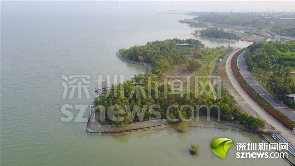 深圳灣圍網航拍圖:沿著海岸線綿延的圍網