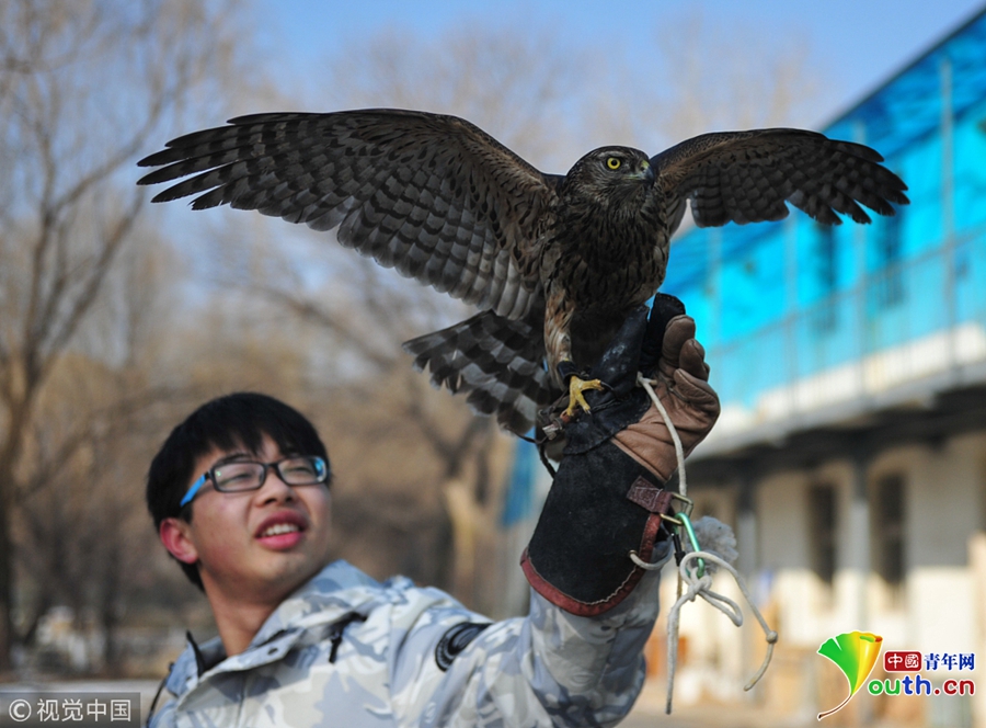 2018年3月11日,遼寧沈陽,蒼鷹等待放飛。當(dāng)日,沈陽市林業(yè)局沈陽猛禽救助中心舉行2018年首次大型公益康復(fù)野放活動(dòng),這次活動(dòng)放飛的都是經(jīng)過救助中心救助后康復(fù)的猛禽,禿鷲1只、蒼鷹3只,都是國家二級(jí)保護(hù)動(dòng)物,省級(jí)保護(hù)動(dòng)物烏鴉1只。