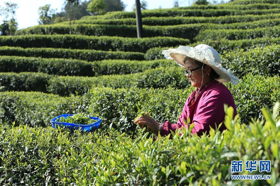 4月2日,茶農(nóng)在重慶市南川區(qū)興又緣茶園采摘春茶。新華社記者韓曄攝