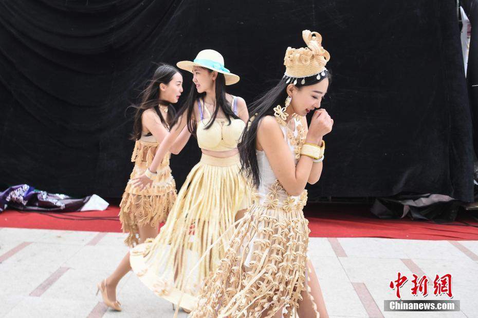 世界地球日 模特身穿草編服飾走秀倡導(dǎo)環(huán)保生活