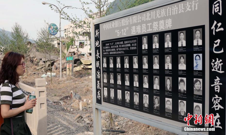 5月初,記者專程前往四川北川,探訪老縣城地震遺址。遺址內(nèi)莊嚴肅穆,不時有民眾參觀悼念。據(jù)管理者介紹,這里每天都有數(shù)百人前往憑吊,節(jié)假日則有數(shù)千人。在這里,保留著地震當時破損的房屋以及修建的遇難者公墓等。在每一個破損的建筑前都設(shè)立有當時建筑的使用單位,有的還豎立著遇難者的名單。當日,巧遇了多位當年在北川職業(yè)中學(xué)就讀的師生,他們結(jié)伴同行在北川職業(yè)中學(xué)遺址悼念在地震中遇難的師生。中新社記者 任海霞 攝