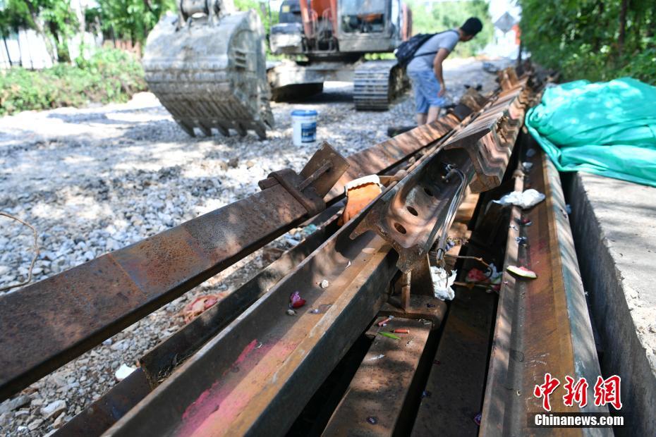 5月8日,穿過昆明市區(qū)的百年滇越鐵路一段已經(jīng)被拆除。當日,昆明地鐵4、5號線正在進行建設(shè),由于施工影響,穿城而過的一段百年滇越鐵路被拆除,“老鐵路”為“新地鐵”建設(shè)讓步。據(jù)了解,在地鐵建設(shè)完工后,這段滇越鐵路將被重新鋪設(shè),恢復(fù)運營。中新社記者 任東 攝