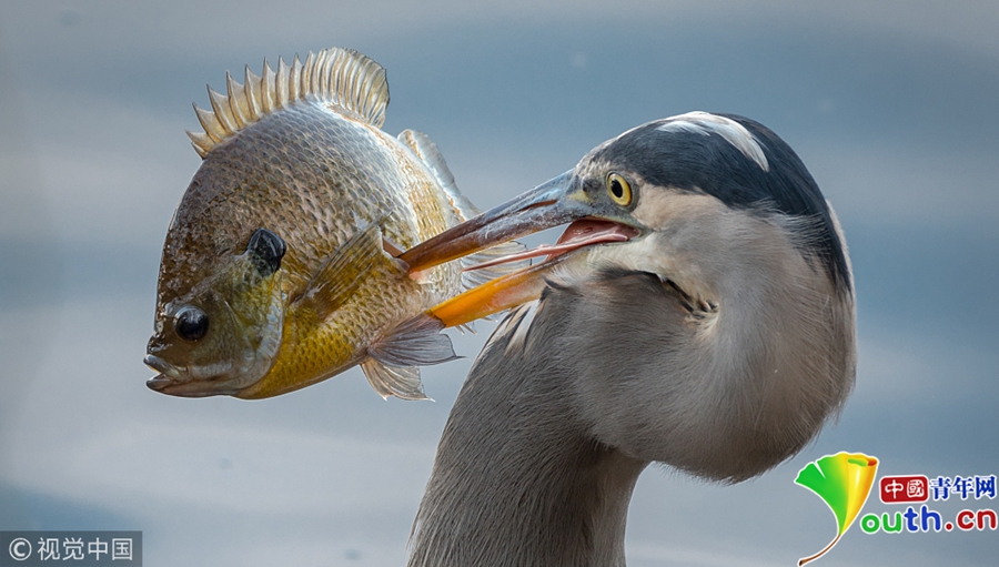 當(dāng)?shù)貢r間2018年1月29日,美國田納西州納什維爾的拉德諾湖州立公園,一只大藍(lán)鷺刺穿了一條“巨大的”藍(lán)鰓魚,一口氣把它吞下。